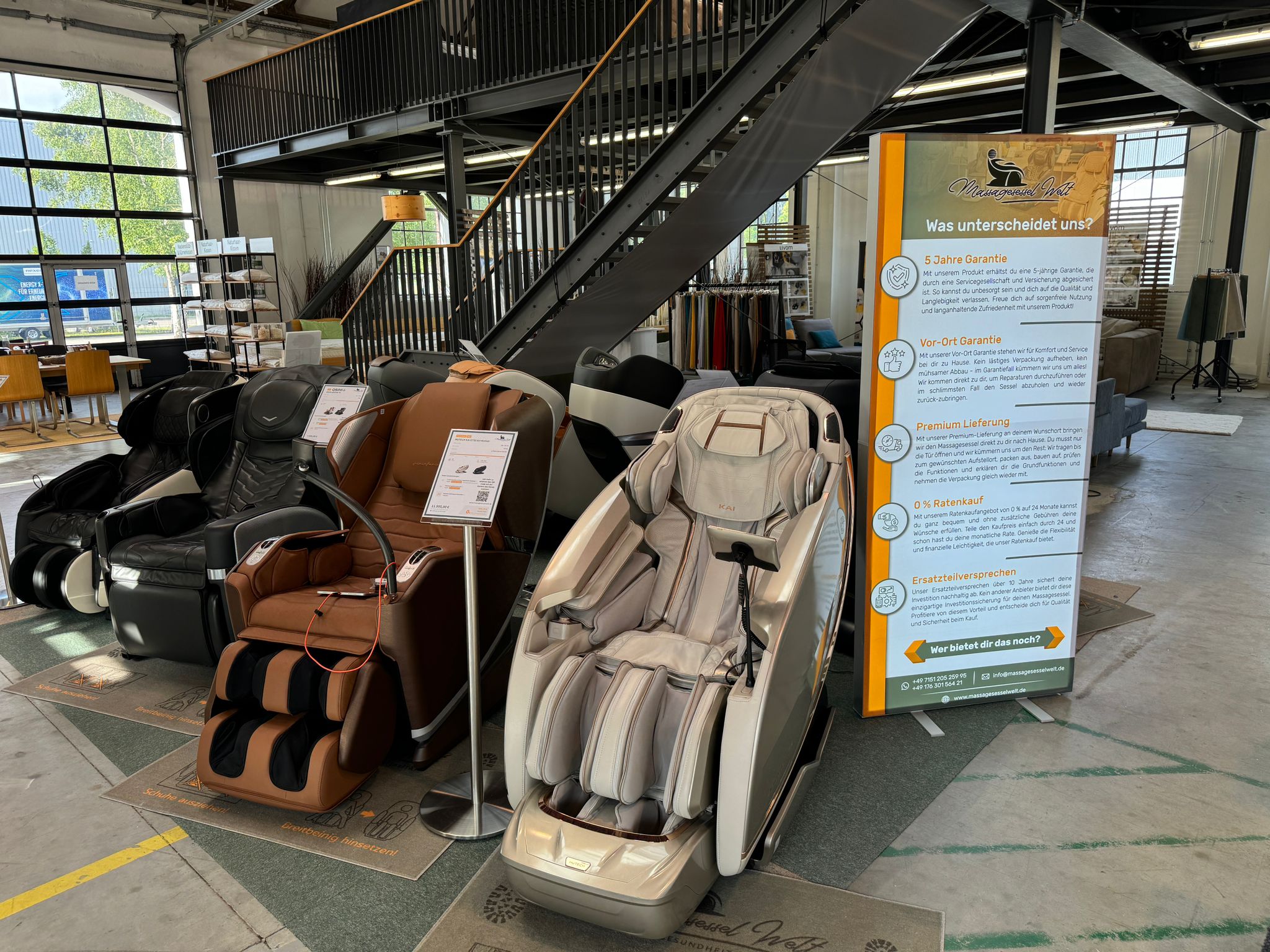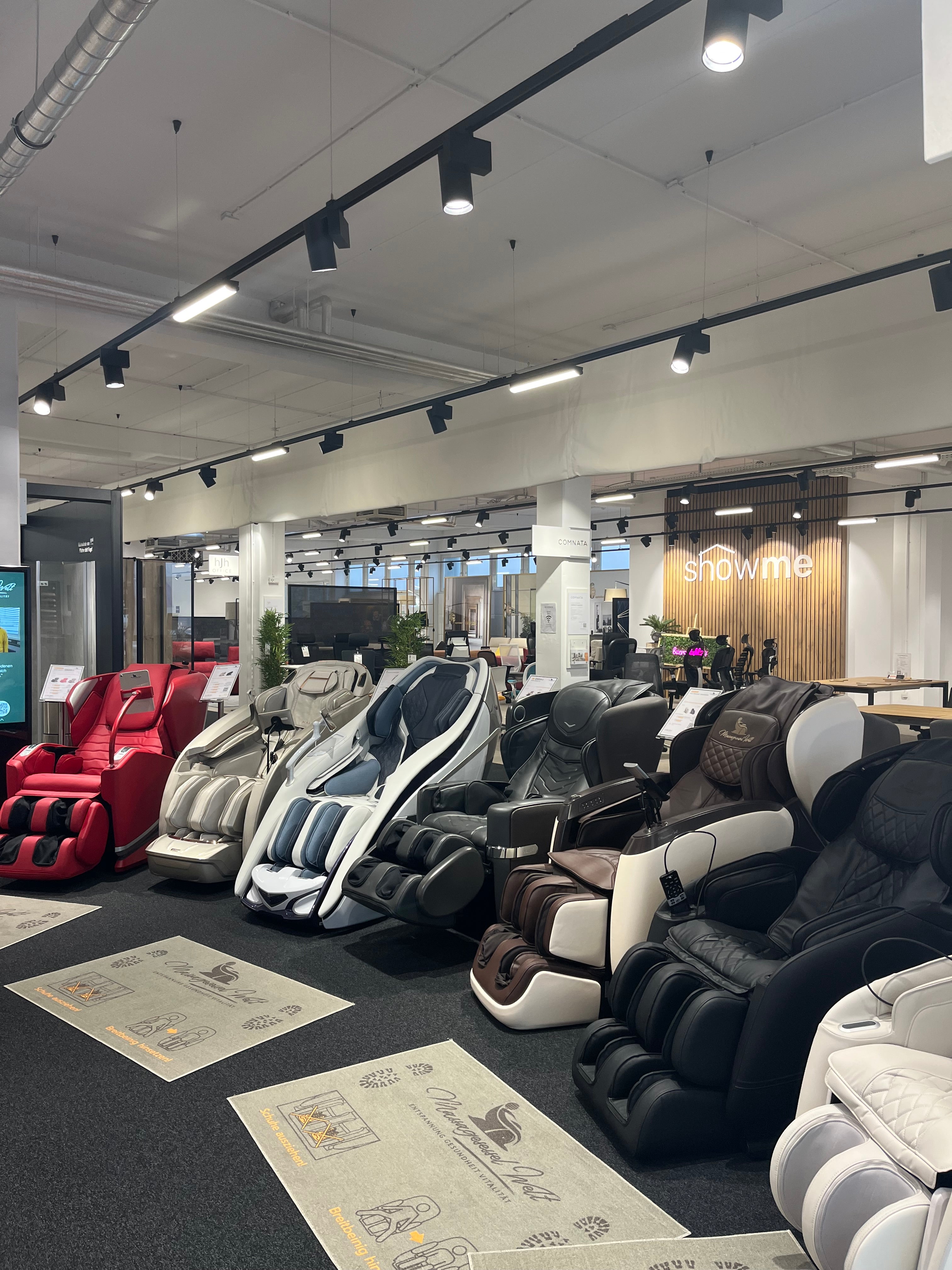 Відчуйте релаксацію наживо – завітайте до нас на безкоштовний тест-драйв без жодних зобов'язань! Чи то за особистою консультацією експерта в наших консультаційних центрах (будь ласка, запишіться на прийом заздалегідь), чи то відпочиваючи та випробовуючи себе в наших виставкових залах (навіть без попереднього запису) – з нами ви можете ближче познайомитися зі світом масажних крісел. У нашому огляді місцезнаходжень ви точно побачите, які моделі доступні на вашому місці. Ви також можете легко домовитися про консультацію там.