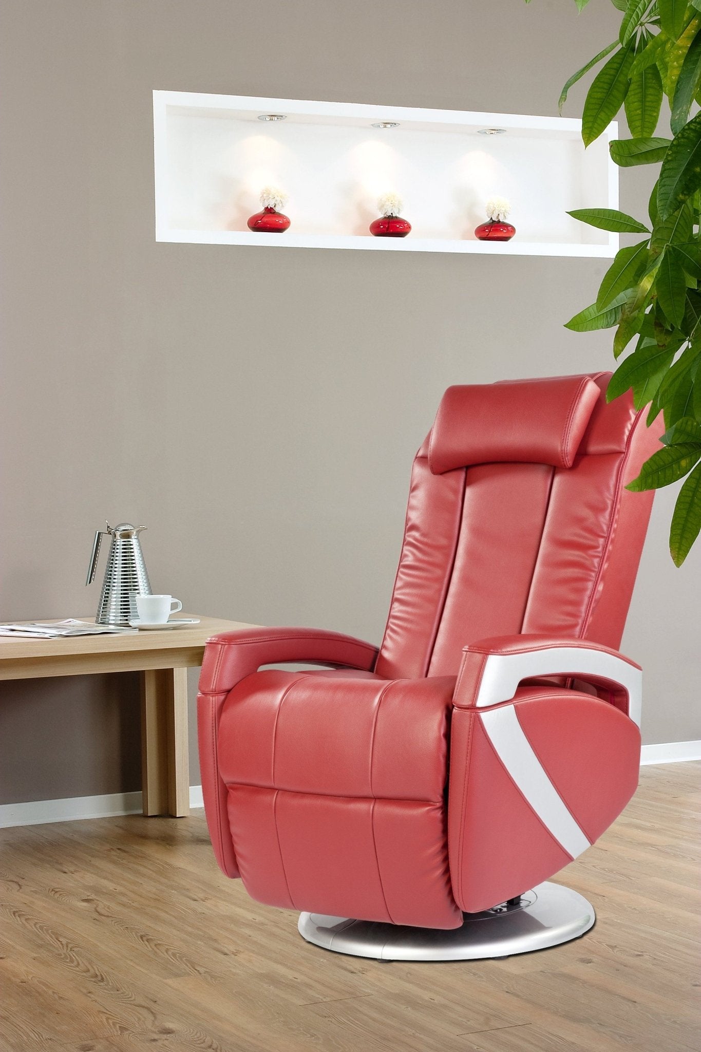 Окрім добірних технологій та зручних функцій, це високоякісне масажне крісло переконує своїм привабливим зовнішнім виглядом. Ергономічна форма "Elegante" AT 315 Wellfit 1A від Alpha Techno пропонує вам вільний вибір між високоякісною оббивкою з натуральної шкіри або легким у догляді шкірозамінником. Він доступний у червоному та чорному кольорах. Надзвичайно стильне враження справляє завдяки надзвичайно компактним розмірам. Навіть для користувачів з обмеженими фізичними можливостями сідати і вставати - це дитяча гра, завдяки злегка піднятій зоні сидіння. М'яка спинка і досить довга підставка для ніг регулюються електрично, плавно і незалежно один від одного, і плавно переводять вас у зручне лежаче положення. Рухома підставка для ніг дозволяє "Eleganten" обертатися на 180 градусів, що робить його ідеальним для розслабленого вечірнього перегляду телевізора або затишного полуденного сну.