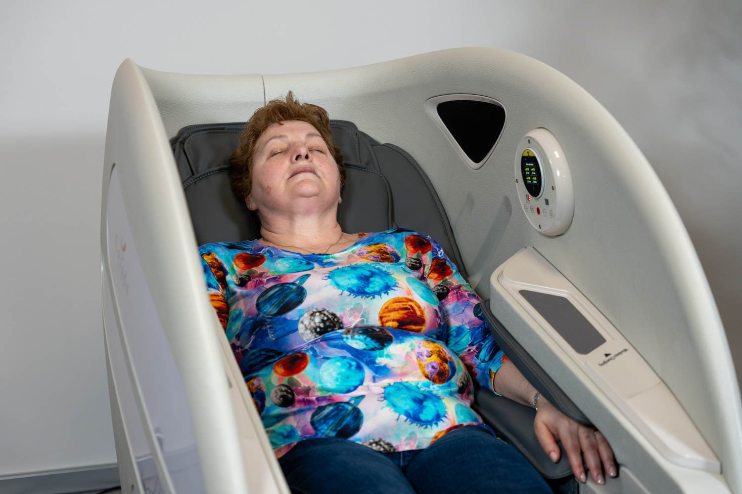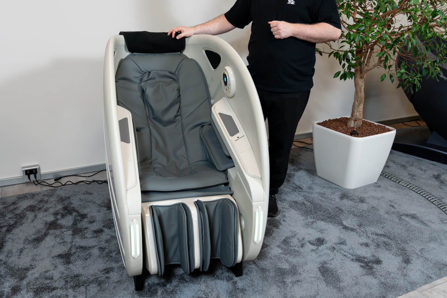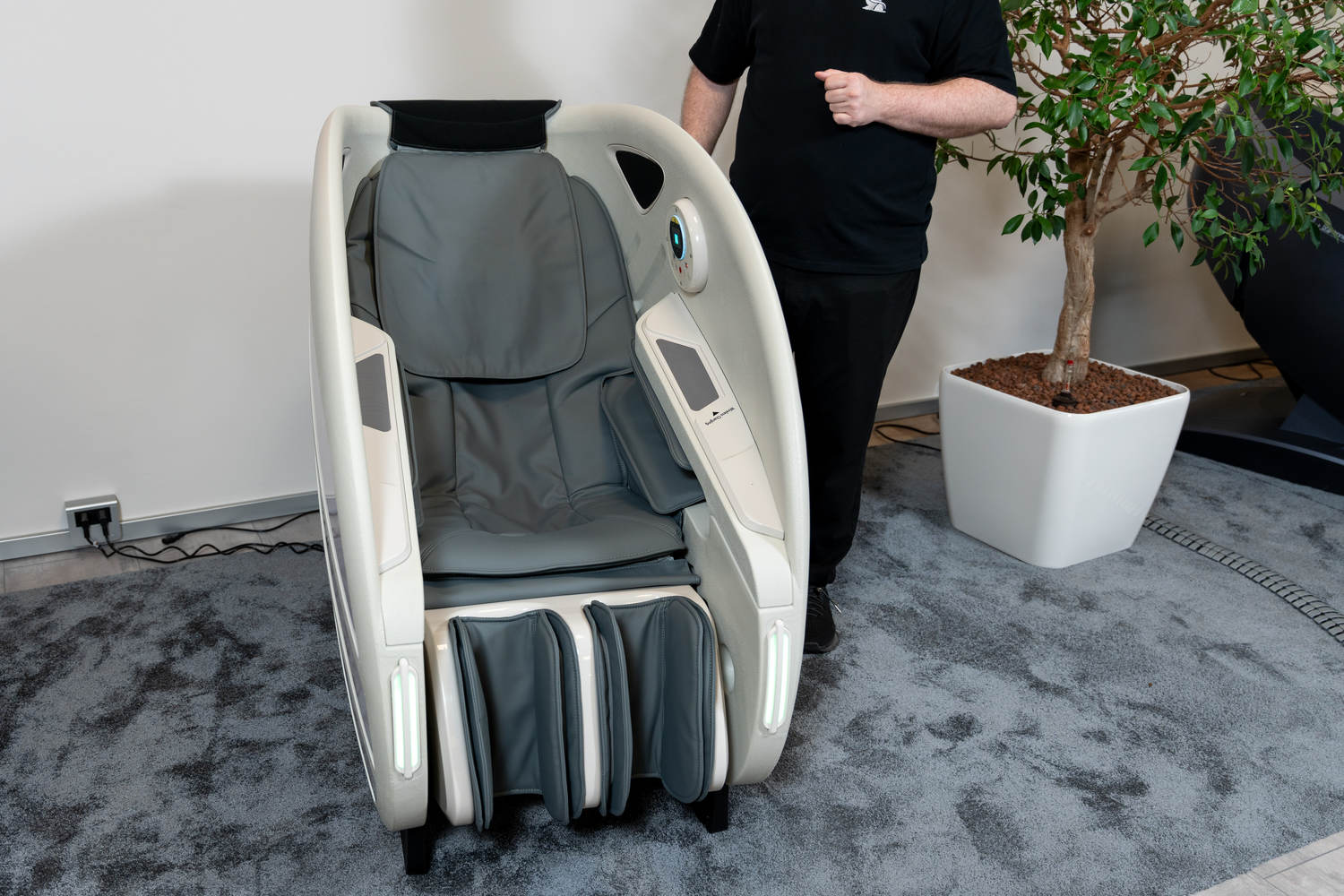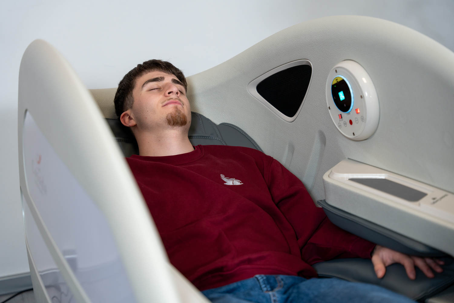 Casada Atlas - це унікальне масажне крісло, яке можна використовувати для створення зон релаксації в громадських місцях. громадських місцях. Його особливістю є футуристичний капсулоподібний дизайн, який приховує в собі передові технології масажу. Важливо, що положення напівлежачи та заглиблені боковини крісла забезпечують користувачеві безтурботне розслаблення з відчуттям безпеки. відчуття безпеки і усамітнення навіть у дуже переповнених приміщеннях.