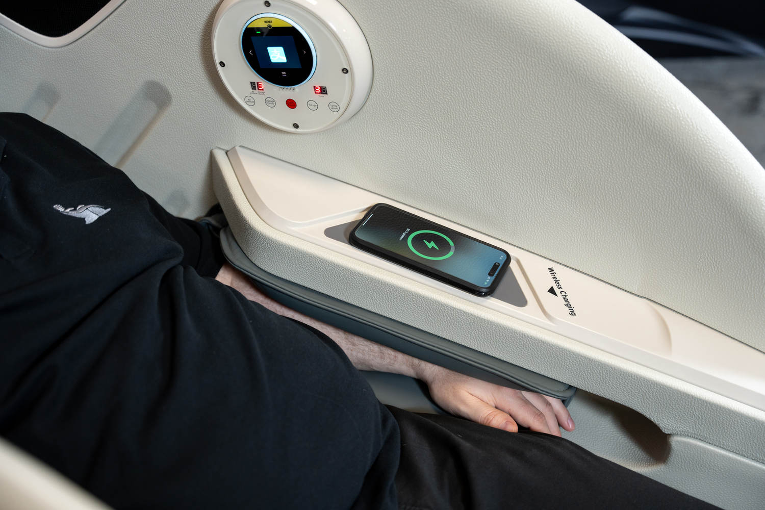 ІНДУКТИВНИЙ ЗАРЯДНИЙ ПРИСТРІЙ Для підвищення комфорту під час масажу крісло також оснащене бездротовим індукційним зарядним пристроєм для мобільних пристроїв.