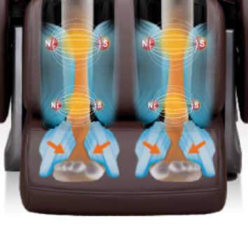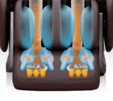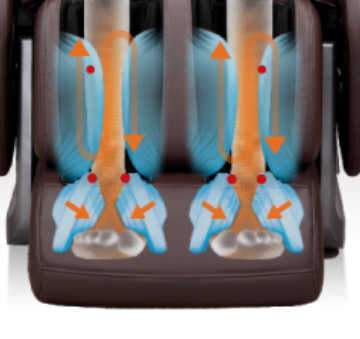 Завдяки поєднанню матеріалів найвищої якості та найсучасніших технологій, "Calf Kneader" повністю присвячений вашому розслабленню та здоров'ю. Ви можете вибрати різні техніки та програми масажу "Calf Kneader" за допомогою повністю графічного РК-дисплея на пульті дистанційного керування. Будь то розслаблююче постукування пальцями, потужний розминаючий масаж або розслабляючий компресійний масаж - "Calf Kneader" реагує на кожне індивідуальне побажання. Телята також отримують користь від спеціальної програми розслаблення: вбудовані ролики інтенсивно обертаються навколо ваших ніг. Крім того, завдяки розслаблюючому компресійному масажу інноваційні повітряні подушки мають оздоровчий вплив на м'язи, з одного боку, і стимулюють кровообіг, з іншого. Навіть пальці ніг не залишилися без уваги: окремі подушки знімають тиск з кожної частини стопи за допомогою спеціального компресійного масажу. Весь сеанс масажу відбувається в приємно теплій атмосфері завдяки масажним роликам з підігрівом.
