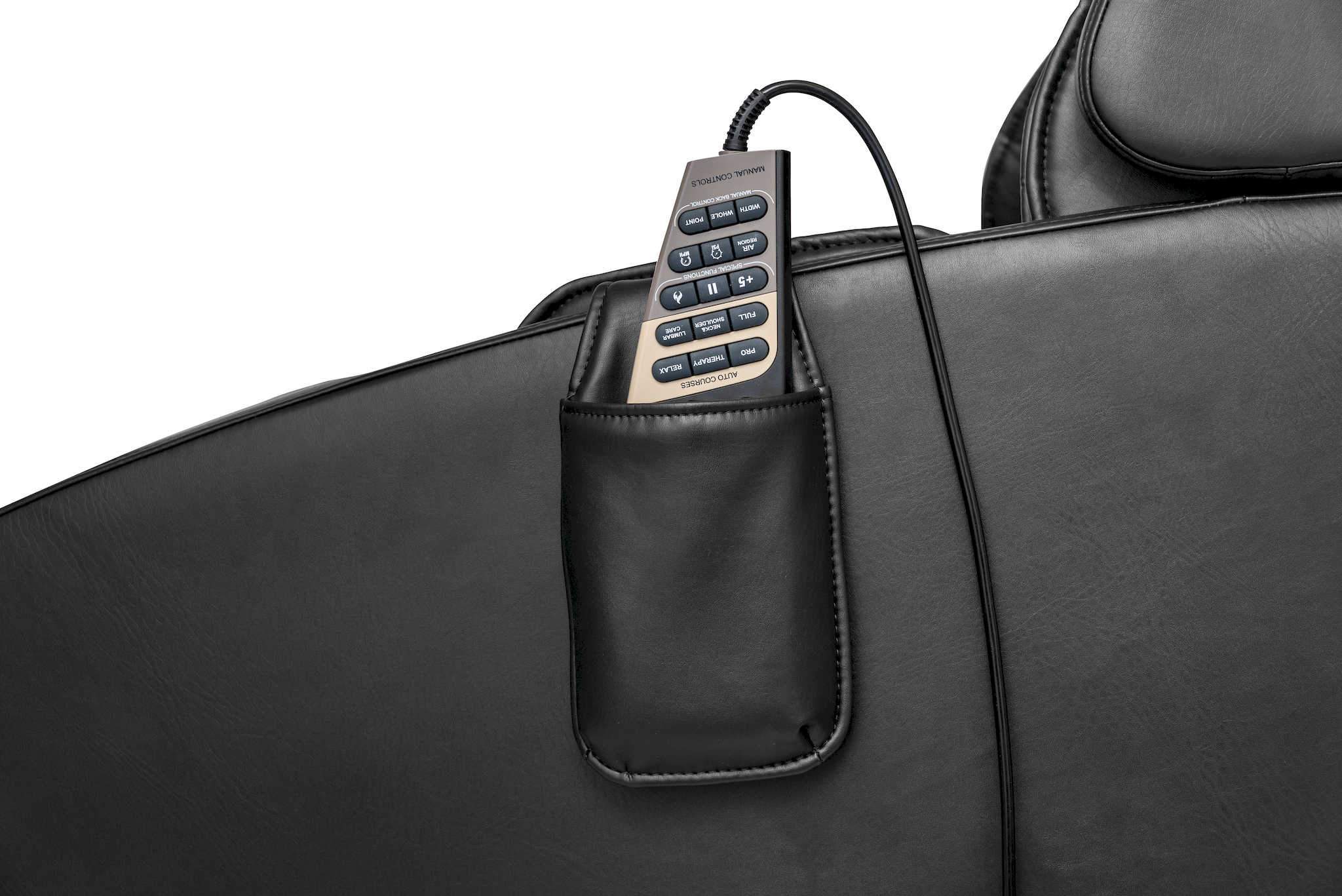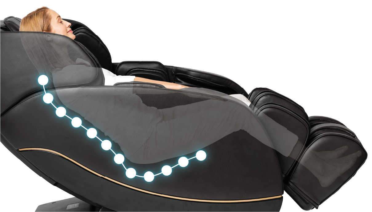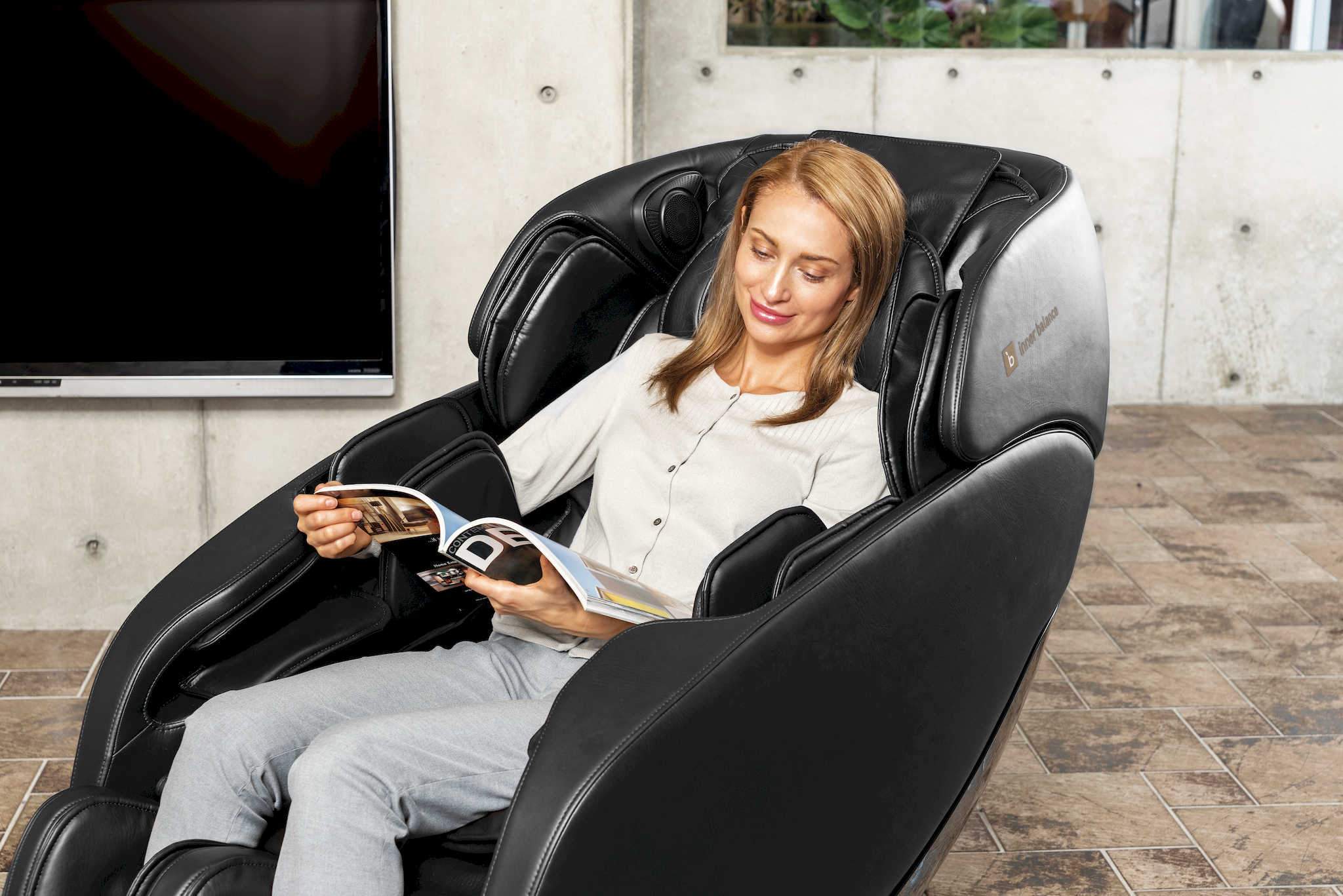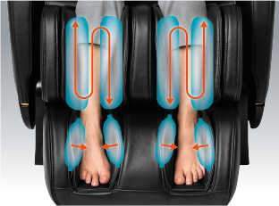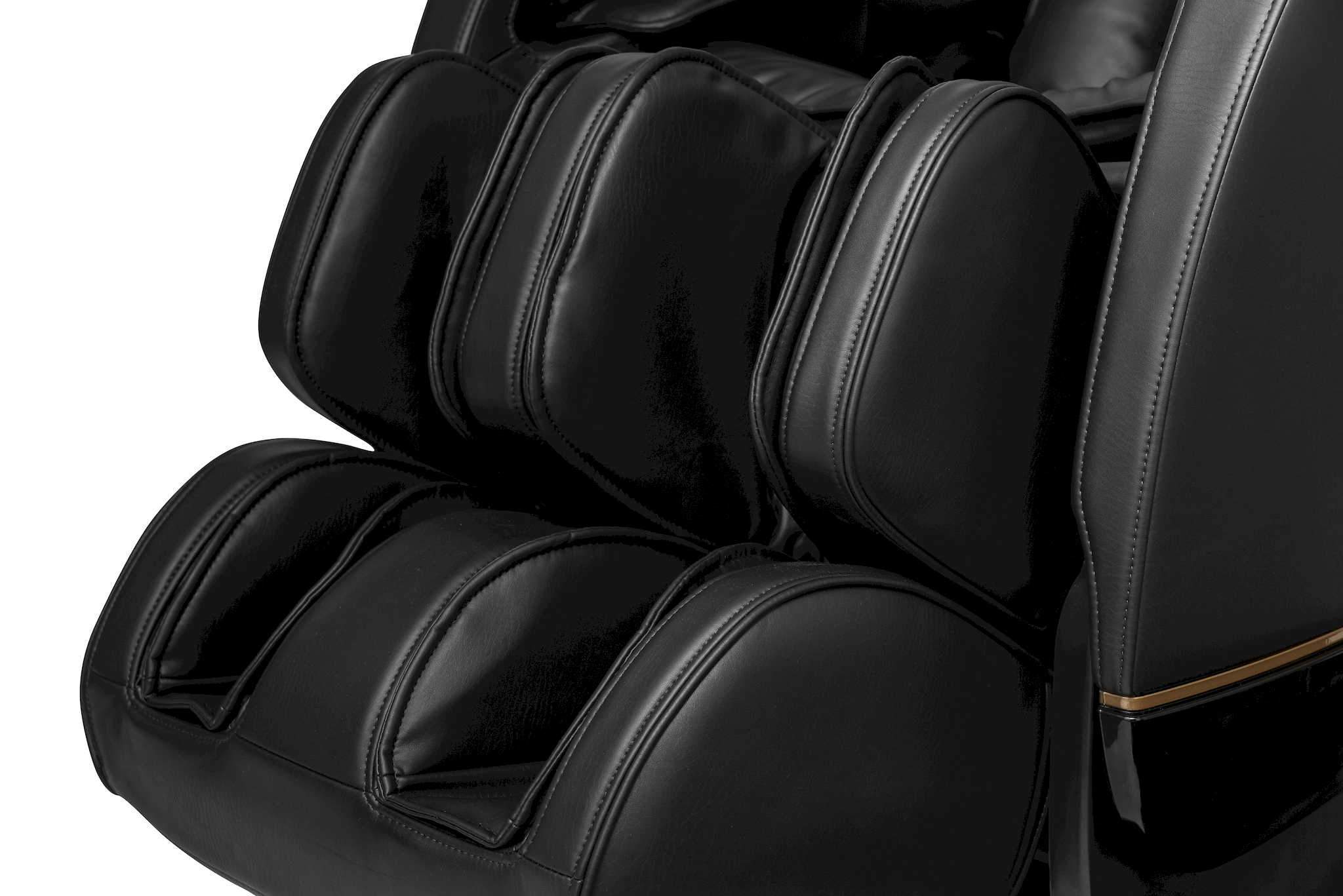 Одним натисканням на простий німецькомовний пульт дистанційного керування ви можете зручно вибрати шість ексклюзивних програм масажу. М'які повітряні подушки м'яко облягають ваше тіло і завдяки розслаблюючому компресійному масажу мають оздоровчий вплив на м'язи, з одного боку, а з іншого - сприяють кровообігу. Рейка довжиною 130 см, по якій рухаються масажні ролики, не тільки повторює ергономічну форму масажного крісла, але і забезпечує чисте розслаблення від сідниць і стегон до шиї і плечової зони. Три налаштування ширини від 6 до 22 см забезпечують особливо індивідуальний масаж спини. На додаток до масажу стоп за допомогою повітряних подушок, активний роликовий масаж для підошов ніг заслуговує на особливу похвалу в цьому ціновому сегменті. Ще однією родзинкою "Jin" є так звана функція "Невагомості": дві спеціально створені невагомі позиції оптимально розвантажують хребет, так що ви можете насолоджуватися найкомфортнішим способом розслаблення завдяки максимальному комфорту сидіння. Потужна функція підігріву, яку можна встановити на дуже високому рівні, особливо в області попереку, огорне вас затишним теплом протягом усього сеансу масажу.