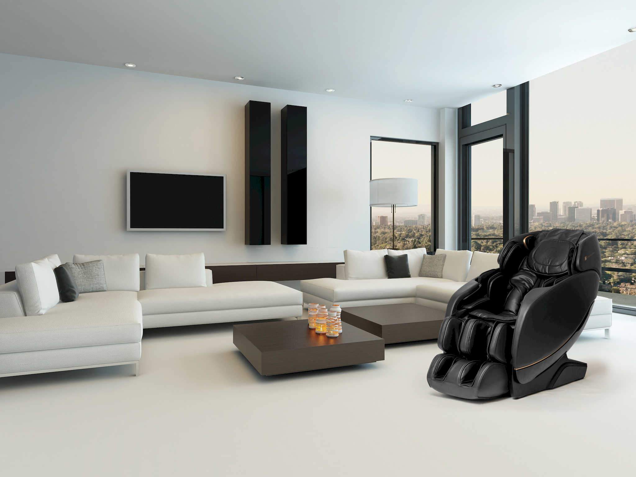 Високоякісне масажне крісло "Jin 2.0" від Inner Balance своїм репертуаром функцій виходить далеко за межі норми - поєднання високоякісних матеріалів та елегантного зовнішнього вигляду є лише однією з його переваг. Його легка в догляді чорна оббивка зі штучної шкіри не тільки особливо довговічна, але й має вражаюче якісну обробку. Завдяки своїм надзвичайно компактним розмірам, що відповідають так званій конструкції "нульової стіни", "Jin" потребує лише 5 см відстані до стіни позаду нього, і тому його можна не тільки легко поєднати з будь-яким інтер'єром, але й непомітно розмістити в кутку. Спеціальні підлокітники у формі "U+C" забезпечують оптимальний контакт рук з масажними елементами в будь-якому положенні крісла. Підставка для ніг напрочуд широка для європейського ринку.
