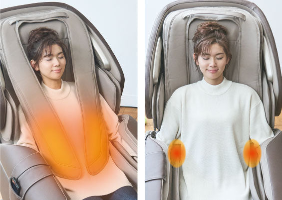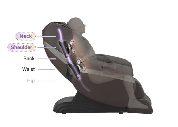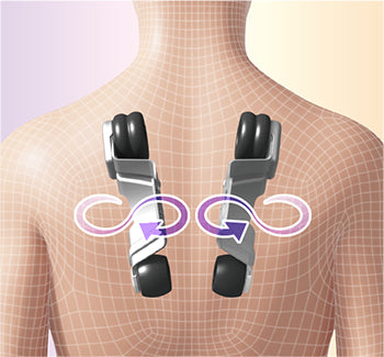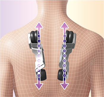 Спинка піднімається, щоб забезпечити потужний масаж від шиї до плечей. Масажні кульки наближаються до плечей під кутом, подібним до людських рук, ефективно розтираючи та розслабляючи затерплі плечі.