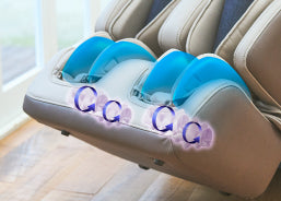 Задня частина стопи м'яко масажується повітряними подушками, в той час як підошва стимулюється подвійними роликами. Цей комбінований масаж сприяє циркуляції крові та забезпечує розслаблення.