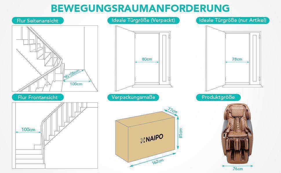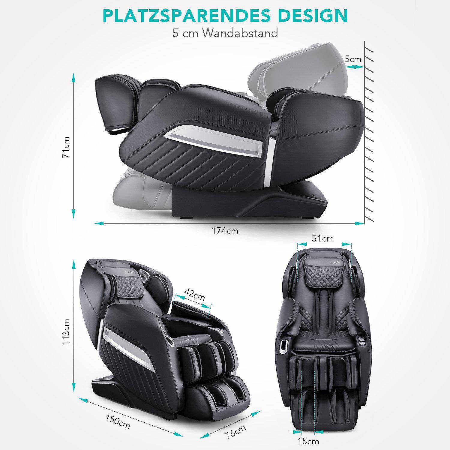 З MGC-A350 "початкового рівня" від NAIPO ви отримуєте не лише власний храм велнесу, але й візуальну перлину, яка елегантно інтегрується у ваш оазис благополуччя. Серце компактного "стартера" вражає своєю затишною оббивкою та компактним дизайном "нульової стіни", що економить простір. Цей продуманий дизайн дозволяє розмістити його на мінімальній відстані від стіни або без проблем і непомітно розмістити в кутку. Покритий міцною штучною шкірою, доступною в чорному та світло-коричневому кольорах, будь-який бруд можна швидко видалити вологою ганчіркою. Благородні акценти у вигляді стьобаного ромбовидного візерунка підкреслюють розкішний характер "новачка". Підставка для ніг, яку можна регулювати на 20 сантиметрів у довжину, забезпечує повноцінне використання навіть для користувачів зростом до 1,80 метра. Однак, більш високим користувачам слід пам'ятати, що через їхній зріст масажне крісло може використовуватися лише в обмеженій мірі в області плечей.
