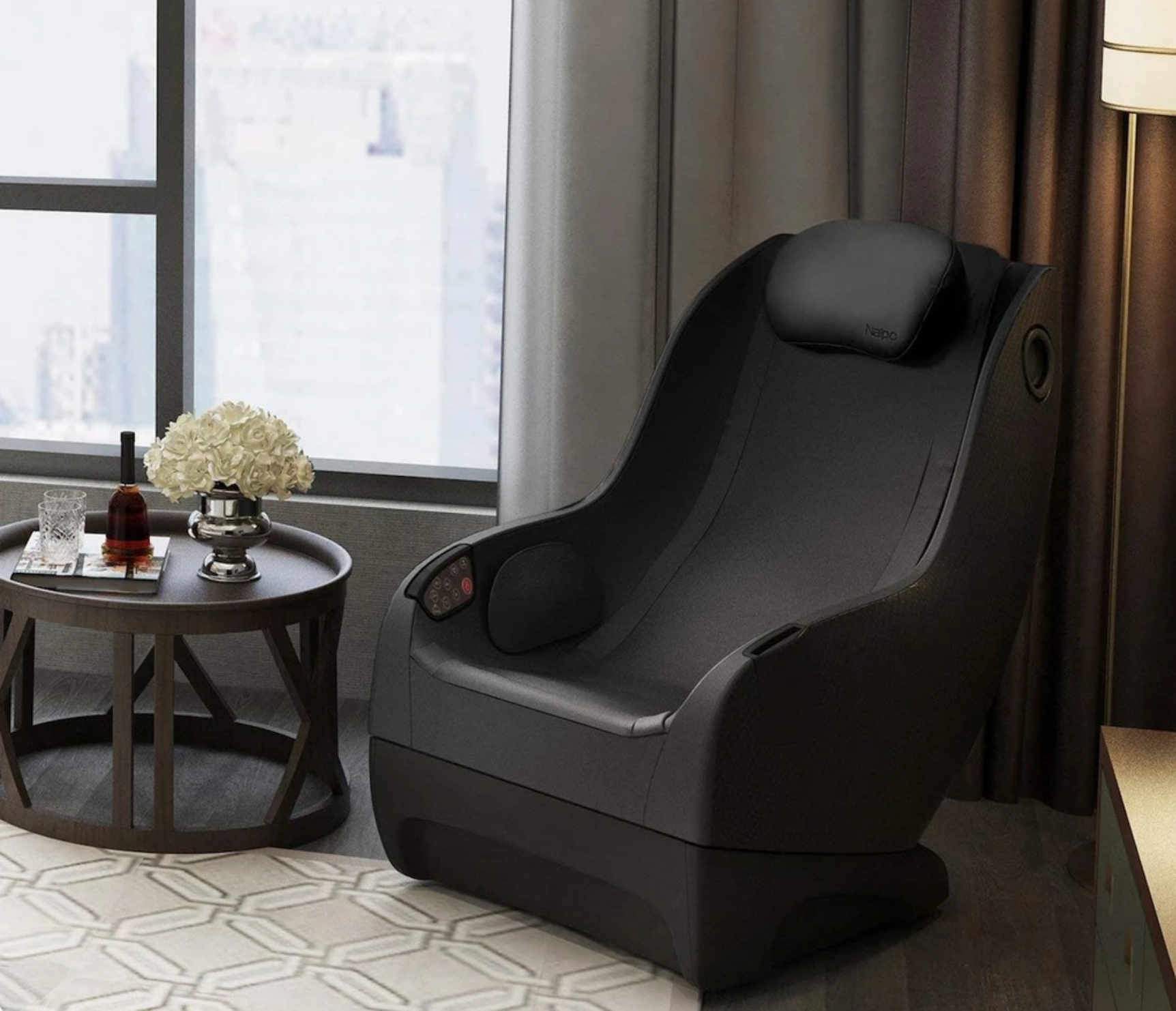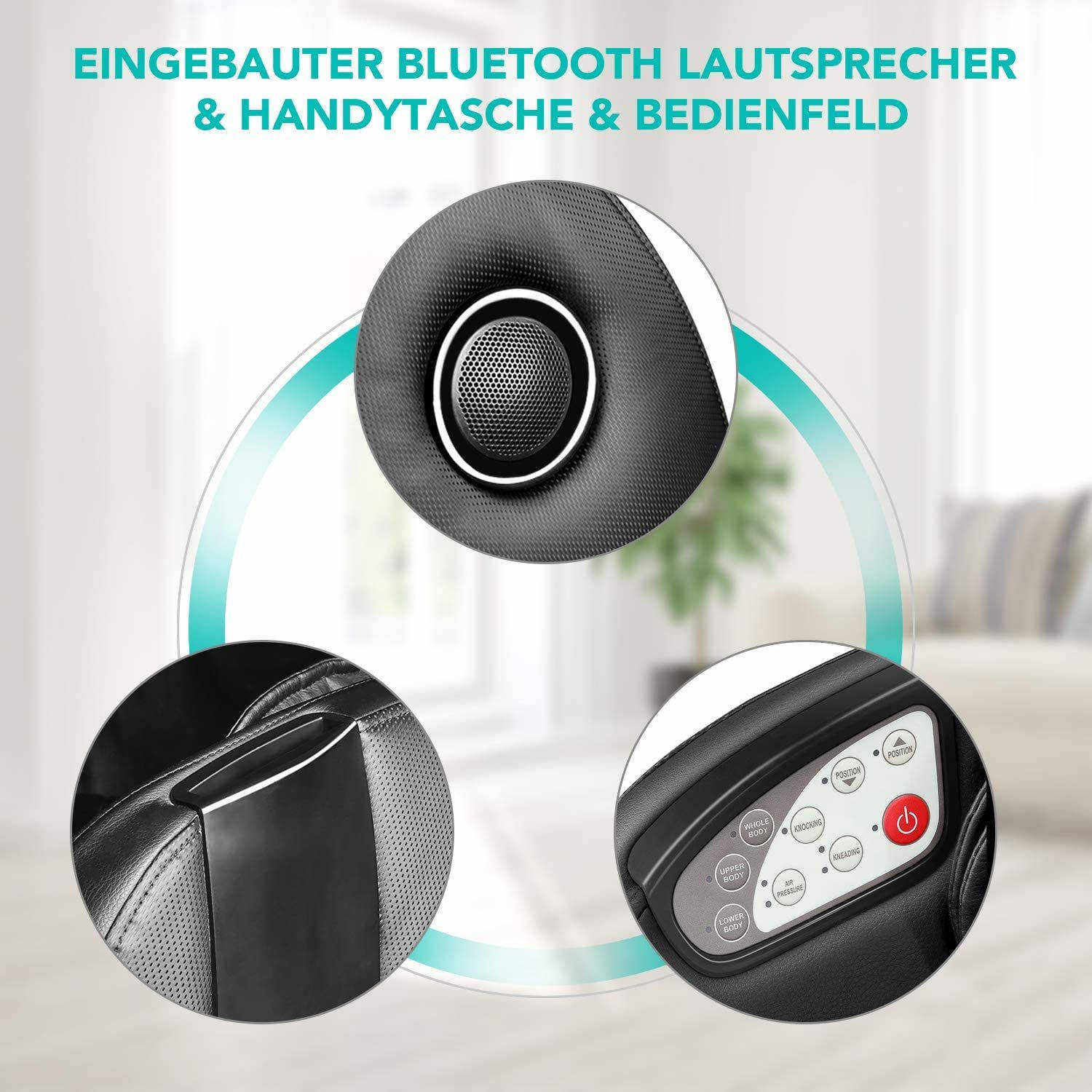 Завдяки своїм вражаюче компактним розмірам - всього близько 0,5 м² - "компактне" крісло MGCHR-A150 від NAIPO є справжнім дивом простору і може бути легко розміщене в будь-якому будинку. Це масажне крісло ергономічної форми переконує з першого погляду своїм позачасовим дизайном і вишуканим зовнішнім виглядом. Його покриття зі штучної шкіри не тільки особливо міцне, але й дуже легке в догляді: будь-який бруд можна видалити вологою ганчіркою в найкоротші терміни. На додаток до функцій оздоровчого масажу, "компакт" має й інші корисні функції: Під час масажу ви можете слухати розслаблюючі звуки через вбудовані динаміки Bluetooth, які створюють затишну атмосферу завдяки своєму 3D-звуковому ефекту. Тримач для мобільного телефону на підлокітнику дозволяє зручно зберігати мобільний телефон під час масажу. Тим часом, тонкий, L-подібний дезодорант "компакт" плавно прилягає до вашого тіла. Незважаючи на всі свої переваги, це оптимальна модель початкового рівня - не в останню чергу завдяки неперевершеному співвідношенню ціни та якості. Знімна подушка та оббивка сидіння перетворюють "компакт" на затишне крісло для відпочинку, в якому можна провести спокійний вечір за переглядом телевізора або подрімати.