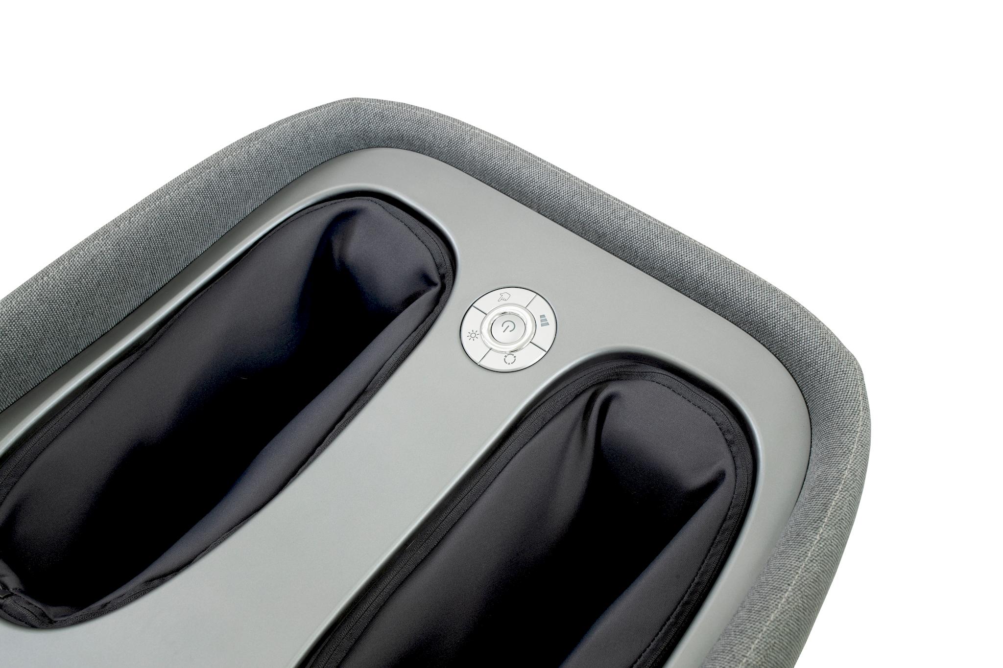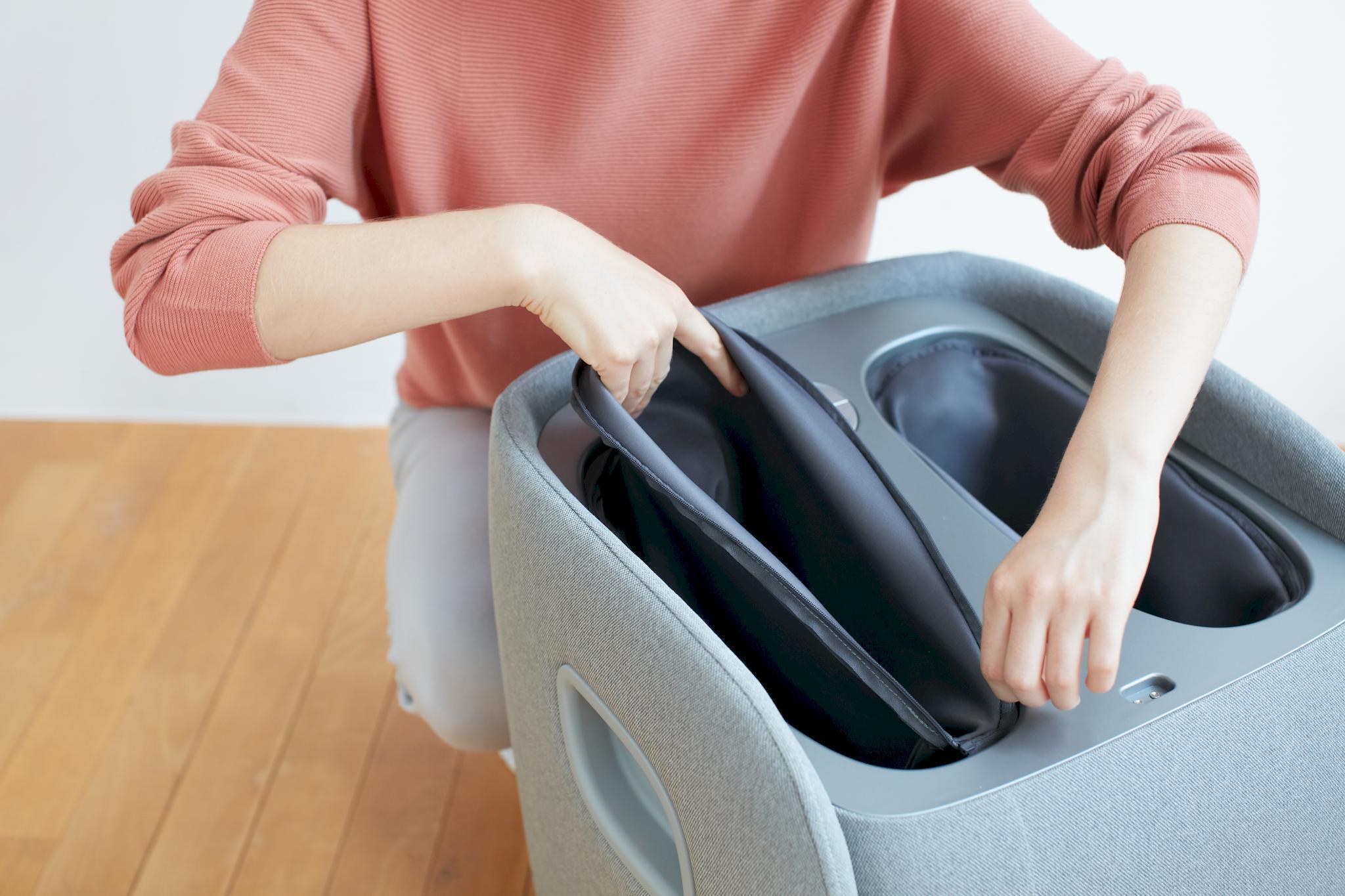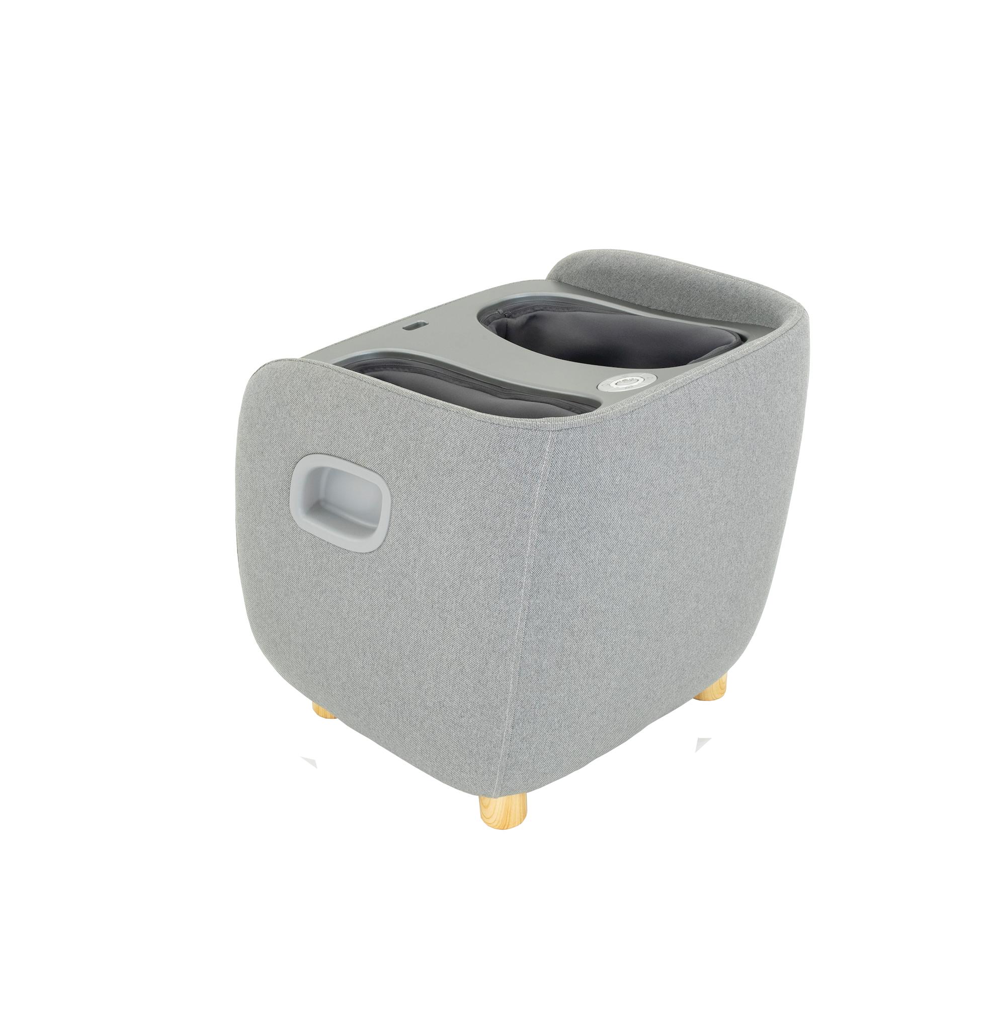 Кушетка REi від SYNCA пропонує дивовижний репертуар функцій у найменшому просторі: завдяки своїм вражаюче компактним розмірам і високоякісному світло-сірому тканинному чохлу легко сплутати з сучасним стриманим предметом меблів для сидіння. Однак, як тільки ви знімете нехитрий чохол "пуфика", за його вишуканим дизайном відкривається високоякісний масажний блок для стоп і литок. Так само відкривається зрозуміле меню управління, за допомогою якого розкішні функції "Оттоманки" обираються одним натисканням кнопки - поєднання японських технік шиацу і гуа-ша переконає вас неперевершеною якістю масажу.